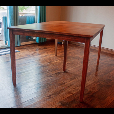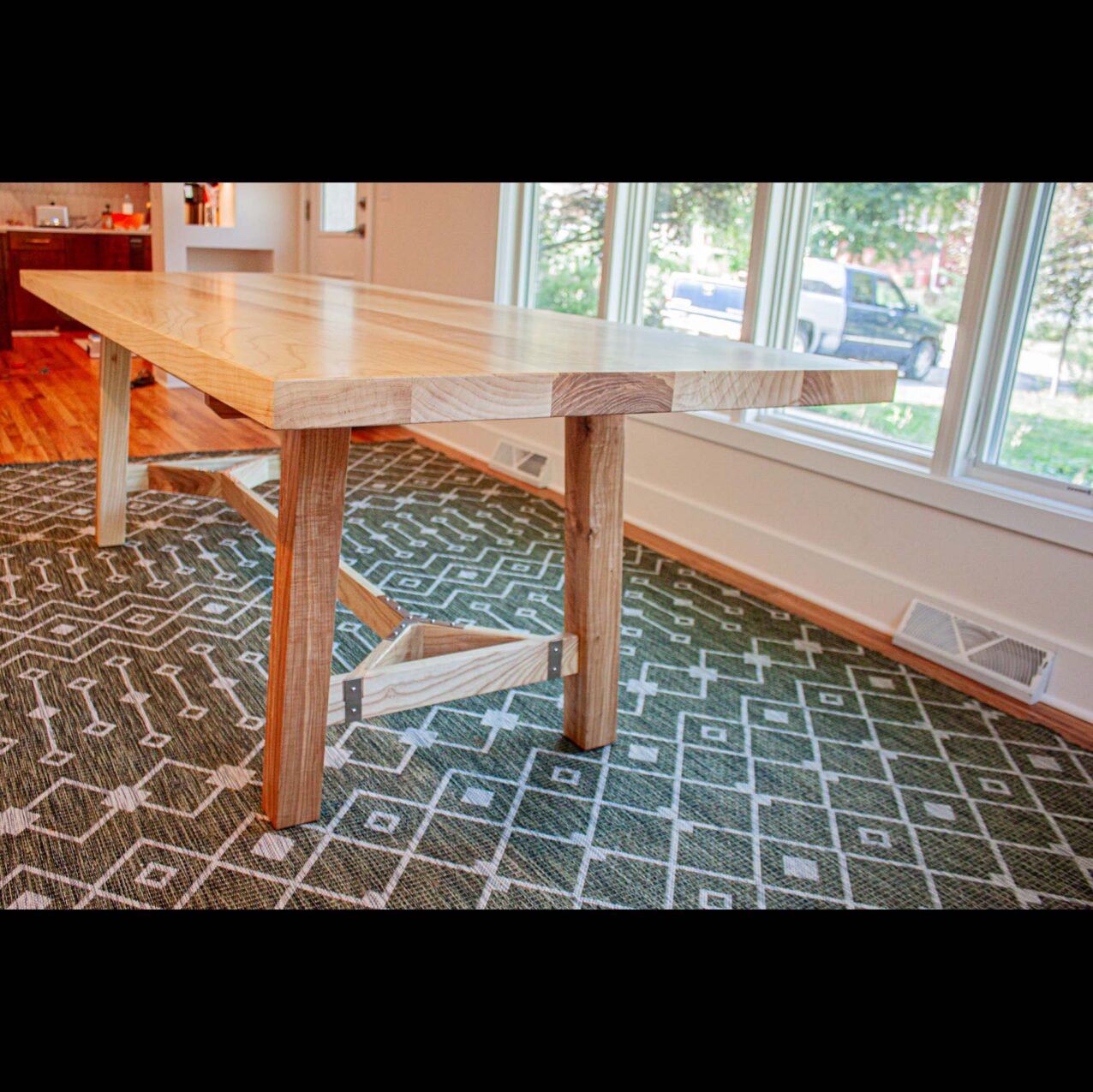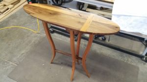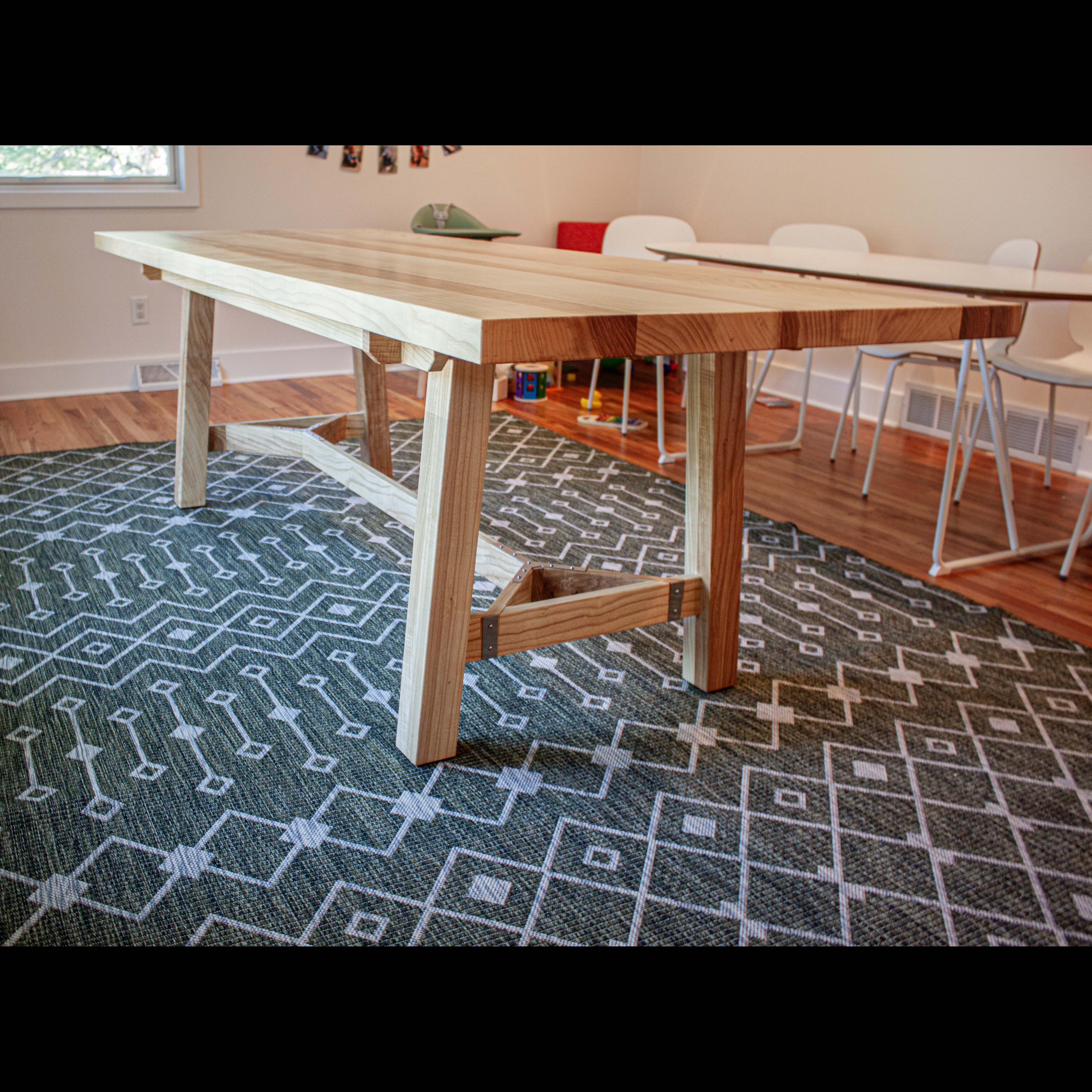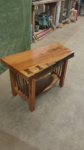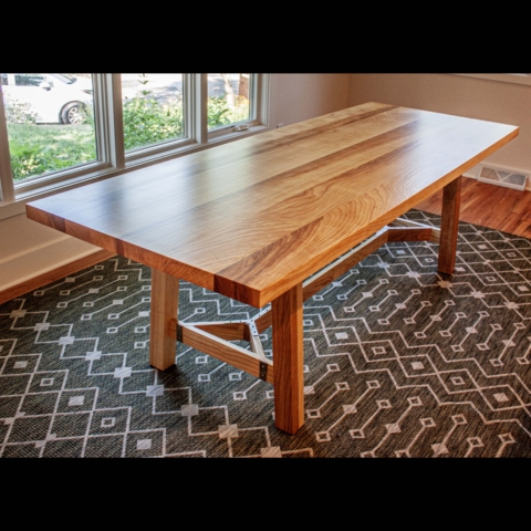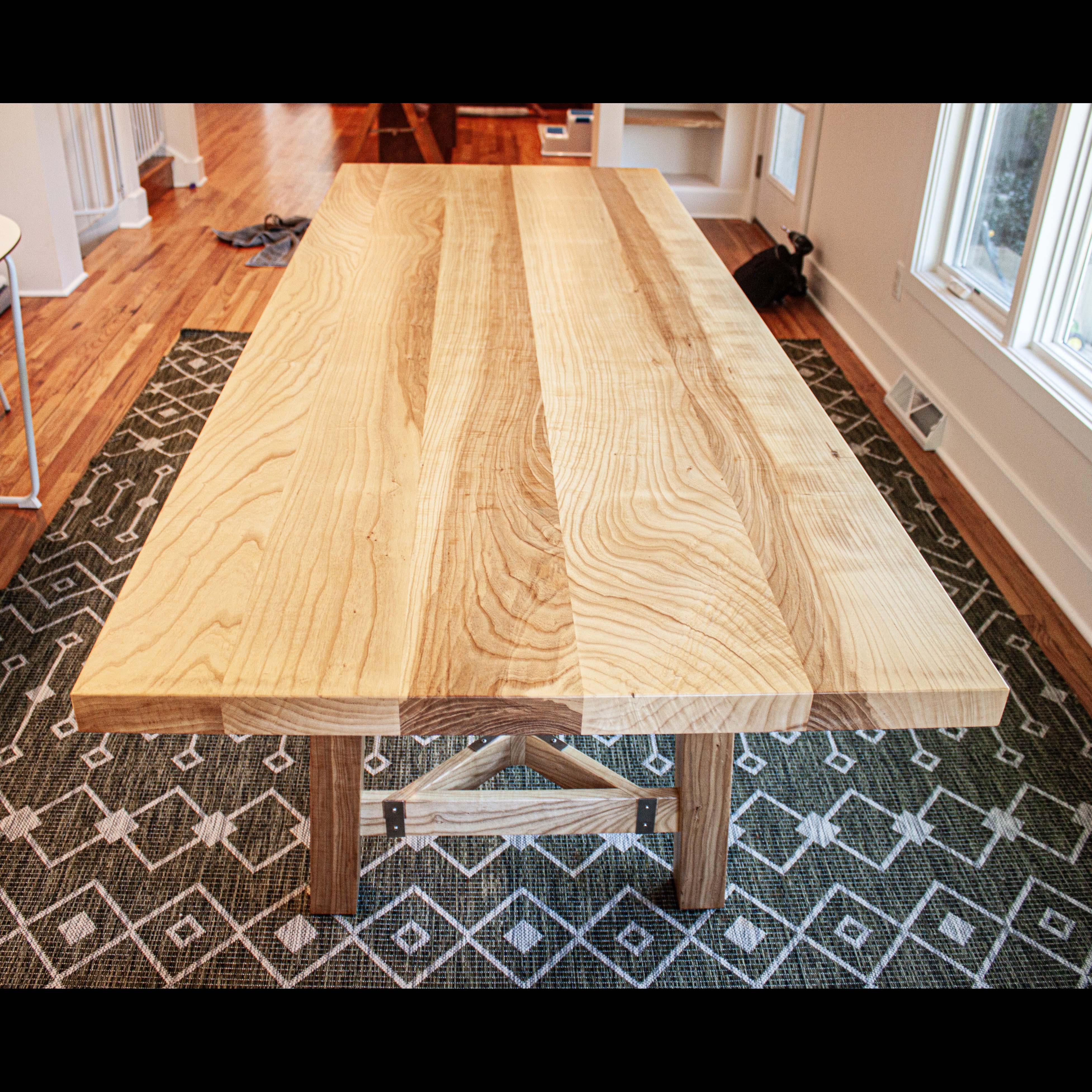 This gorgeous ash hay rake table was custom built for a customer who had a dead ash tree in their yard milled and kiln dried into furniture worthy boards. From there we designed and created this table that features the distinct hay rake base, a two inch thick top, and custom made stainless steel brackets. She’s breathtaking and destined for generations of good use!