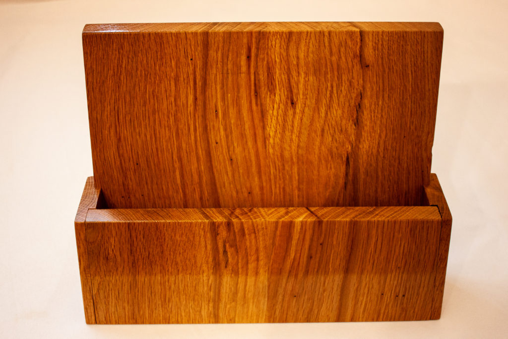 These simple and elegant brochure holders naturally draw the eye. They were designed for realtors to display real estate flyers at showings and open houses to ensure their contents would be seen.