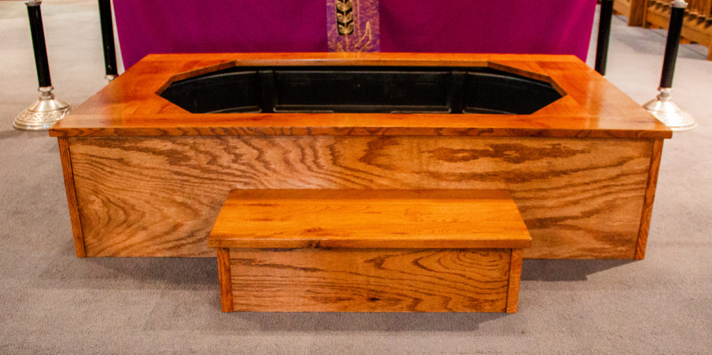 This baptismal font was designed and created to simply and elegantly match the decor of the church it was created for. It was made of lightweight materials to accommodate for its seasonal use, and is very sturdy, yet can also be moved with ease. We very much enjoyed working on this project and were only too happy to help out this very special customer.