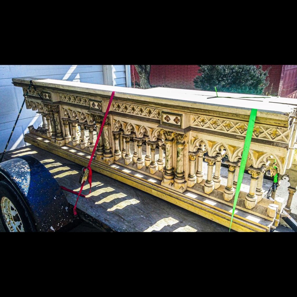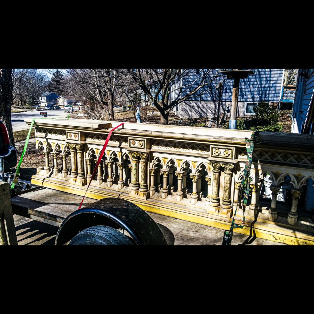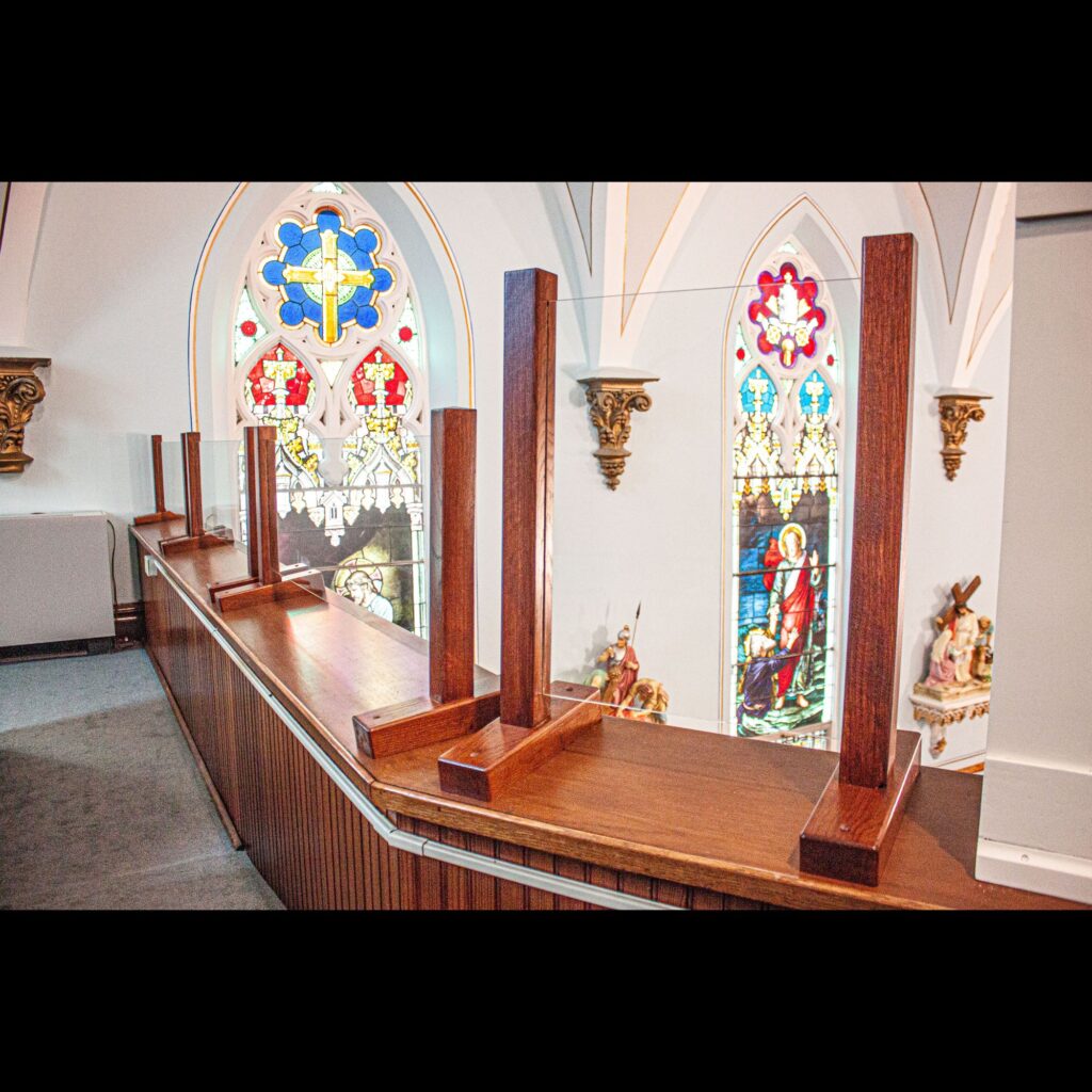 We were tasked with refurbishing St. Mary’s Church in Riverside’s old communion railing and redesigning it as a choir loft railing. We started the project back in February but the chaos of recent times had us delaying this project for longer than we anticipated. We finally got the old railings sanded down, re-assembled, painted, detailed and installed in early August. We added clear glass railings on either side of the refurbished railing as a means of creating a safety barrier while simultaneously not detracting from the beauty of the surrounding art and permitting people to have a clear view of the altar, even when seated in the balcony. Not only are the refurbished railings a crucial safety feature for the choir loft, they really tie the church together by matching the design and color scheme from the altar and applying it to the back of the church. They look like they were made to be there and that is exactly what we intended. For more details on the project you can read a full article by Lindsay Steele featured in the Catholic Messenger here https://www.catholicmessenger.net/2020/09/new-life-for-old-communion-rail/?fbclid=IwAR2XylA7TNtFMU9zUw3NmzDgSEfeGb9N2ELL669zWEe1ITIDKW97HvW8bsY